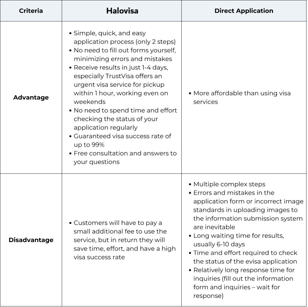 Halovisa simplifies the visa application process, especially with its “2 NOs”: No need to fill out forms yourself, no need to spend time checking visa status, and a 99% visa approval rate guarantee. Additionally, if you have any questions, you can contact them for free consultation and assistance.
